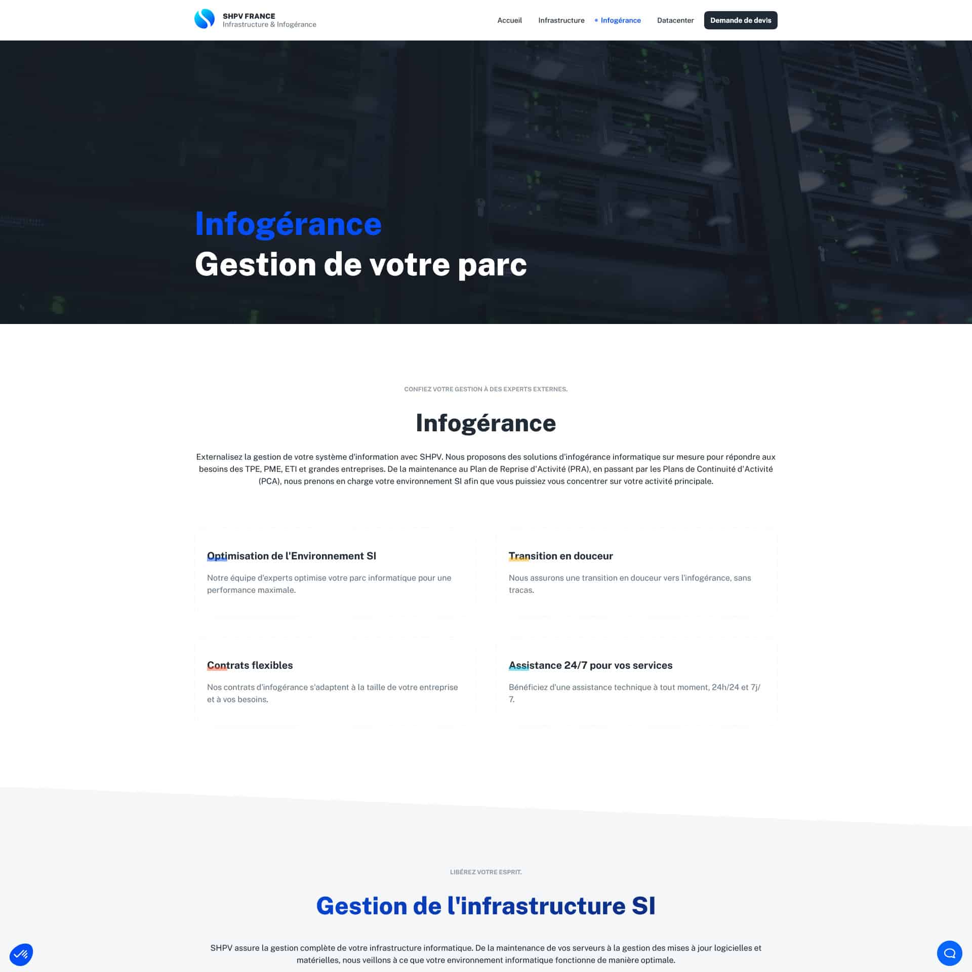 SHPV France, avec son expertise reconnue dans le domaine de l’infrastructure et de l’infogérance informatique, se distingue par sa capacité à fournir des solutions sur mesure répondant précisément aux besoins de chaque entreprise. En garantissant sécurité, performance et continuité des activités, SHPV s’impose comme un partenaire incontournable pour accompagner la croissance et le développement de ses clients.